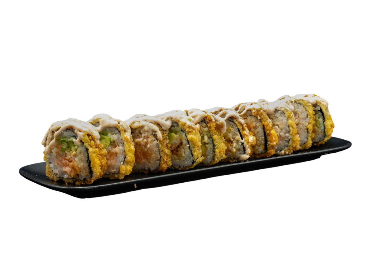 Futomaki saumon, Surimi, avocat, Tempura, mayo Japonaise épicée